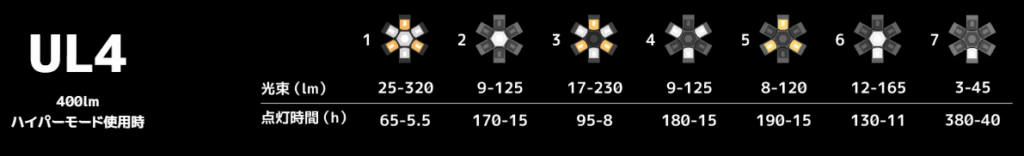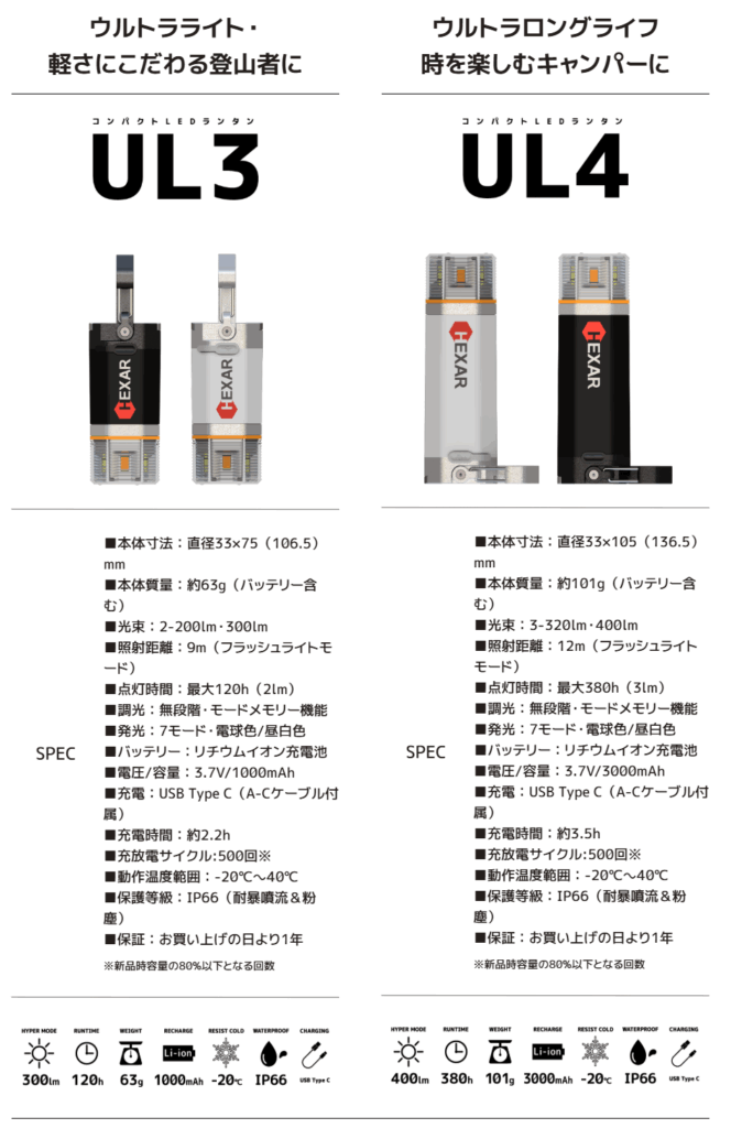 同シリーズの小型版UL3も迷いましたが、40gの重量増でバッテリー容量が3倍になるためUL4を選択しました。