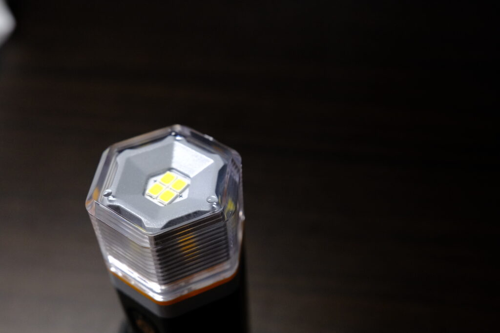 直接LEDをみるとまぶしいランタンが多いですが、HEXAR UL4では樹脂キャップと付属の袋で光を柔らかくできる点もありがたい。